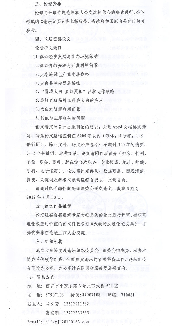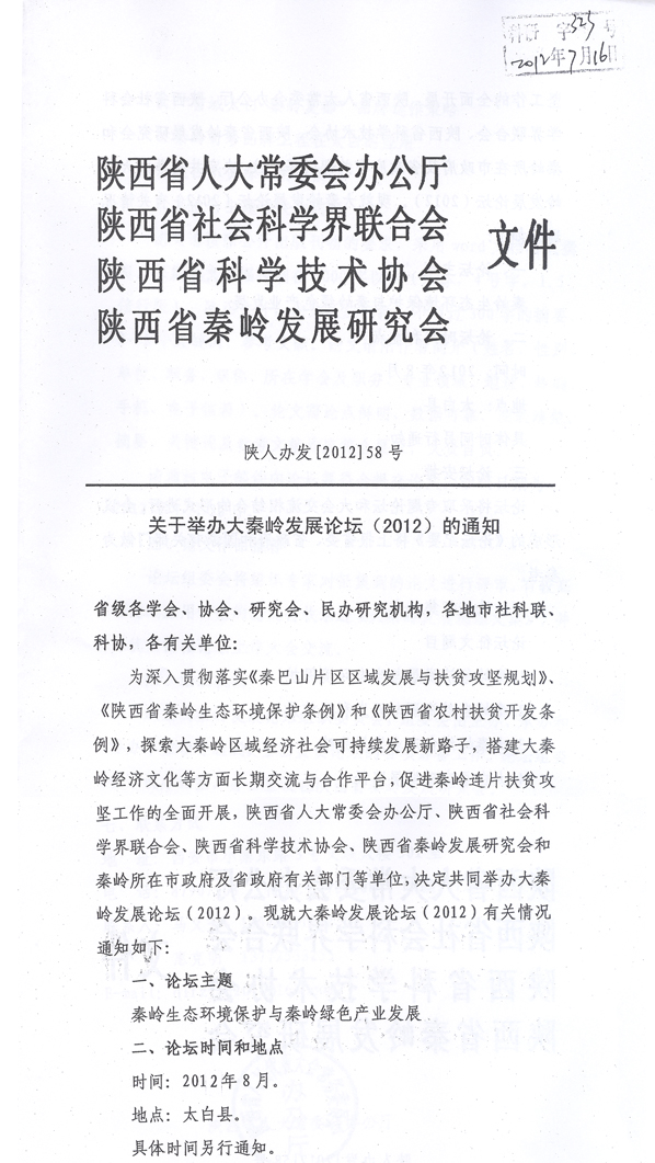 关于举办大秦岭发展论坛的通知