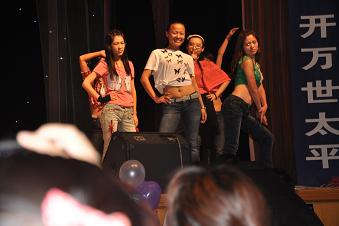的学生积极参与了多个节目的演出,节目形式多样,异彩纷呈。来自体育教育训练学专业的张婧同学参与了开场舞的演出,热情四射的舞蹈一下子活跃了整个演出现场的气氛。来自国外马克思主义研究专业的胡小迪同学、中国近现代史基本问题研究专业的范晓莹同学以及新闻与传播专业的陈睿同学与其他学院学生联袂表演诗朗诵《从今天起,继往开来,饮水思源》,感情真挚,表达了交大学子情系母校、发愤图强的坚定信念。