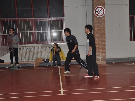活动分两个阶段进行。第一个阶段——自由活动。在这一阶段,同学们凭兴趣选择搭档,依次上场练习。活动中,根据默契度等因素,同学们重新确定了搭档!第二个阶段——正式比赛。虽然说是比赛,但没有浓浓的硝烟味,充满了趣味性而不失竞争性,只是采取了计分制,取胜的队伍继续留在场上,场下的队伍负责給场上的队伍加油助威!两个小时的活动期间,充满了欢声笑语。