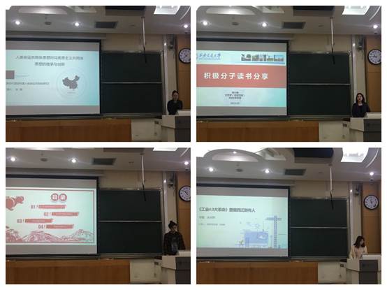 活动伊始,王劲书记强调多读书、读好书的重要性。“读书可以坚定我们的入党信念、加强我们对党的了解、在现实中指导我们的行动。”并表示读这些书,可以了解我们国家的发展,才能更好地将个人的命运与国家、民族的发展相契合。