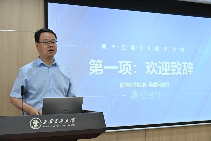 杨建科向参与本次暑期学校的同学表示热烈欢迎,他从地域优势、时代背景等角度说明暑期学校为何以“中国传统文化”为主题。他表示,C9暑期学校是盟校学生了解各个学校发展状况、感受不同文化的契机。西安是一座历史文化名城,此次暑期学校将通过课程学习、参观讲解等方式让大家感受中国传统文化的魅力;同时,在中国实力提升、大国外交的背景下,传播中国传统文化在当代具有重要价值。他期望同学们能够生活愉快,学有所得。