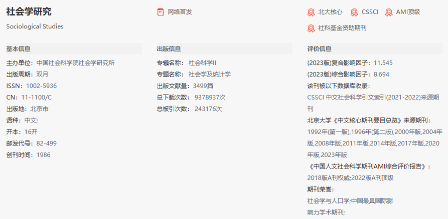 人文社会科学学院社会学系张顺教授和吕风光博士生合作完成的《数字时代的就业风险分配:制度主义的视角》于《社会学研究》2024年第5期发表。《社会学研究》在中国社会科学院、南京大学、北京大学、武汉大学等评价机构的期刊排名中均名列社会学学科第一,被评定为“2022年度中国人文社会科学期刊AMI综合评价”顶级期刊、“中国最具国际影响力学术期刊”等。