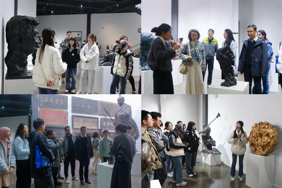 艺术系党支部书记、雕塑家苗祥瑞结合自身展出的雕塑作品《听泉》为参观师生们分享了作品的创作历程,阐释了作品的文化内涵和艺术表达。