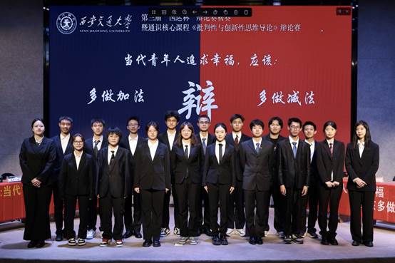 本次辩论赛分别以“大学生更应该把未来的人生看作是一张蓝图/冒险”和“当代青年人追求幸福,应该多做加法/减法”为题开展辩论。由《批判性与创新性思维导论》课程的16位学生组成正反方,比赛现场同学们穿浅色(支持正方)或深色(支持反方)的衣服代表自己的立场观点。辩论结束后,改变立场的观众同学更换座位区,这一互动环节不仅增强了比赛的参与性,也为整个辩论活动增添了更多的互动性和趣味性。