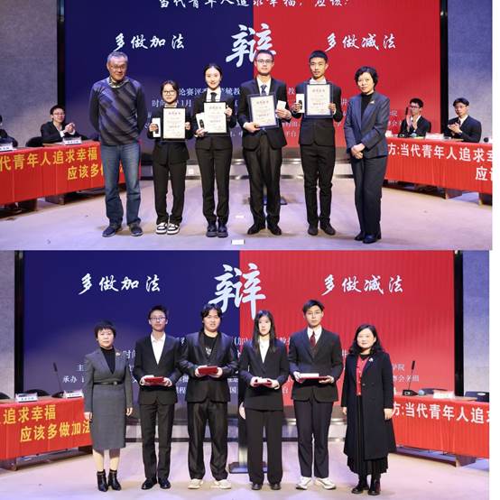 比赛下半场,双方围绕“当代青年人追求幸福,应该多做加法/减法”开展辩论。正方围绕个人价值和社会价值的实现强调实践探索,反方则着眼于当代青年的现实困境,认为应该减去累赘,回归本真。