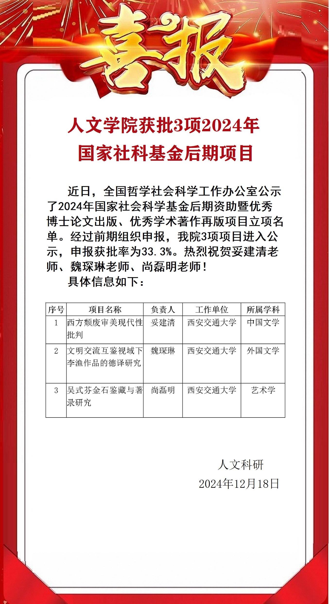 【喜报】黑料网 获批3项2024年国家社科基金后期项目