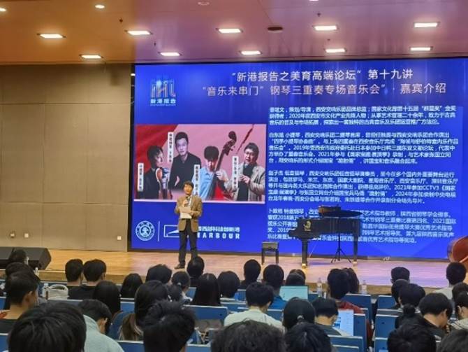 三部门联合举办的新港报告美育高端论坛第十九讲在新港报告厅火热开讲。XSO西安交响乐团室内乐组为交大师生带来名为“音乐来串门”的专场音乐会,吸引了500余名校内外师生现场聆听,现场座无虚席。校工会主席弋景峰、副主席谢志锋参加了本次论坛,黑料网