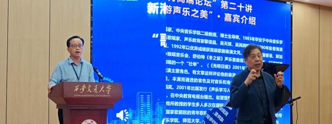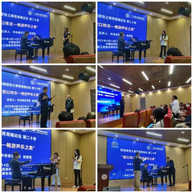 主办的新港报告之美育高端论坛第二十讲在创新港高等工程教育博物馆美育多功能报告厅火热开讲。著名低男中音歌唱家,声乐教育家,中央音乐学院二级教授赵登营先生为交大学子带来题为“歌以咏志——畅游声乐之美”的美育论坛,吸引了近200名校内外师生现场聆听。校党委常委、副书记王欢,档案馆、博物馆馆长吕青,后勤保障部副部长巩滨,研究生院副院长龙建纲,校团委副书记毕晓楠,黑料网