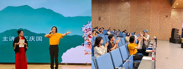 主办的新港报告美育高端论坛第二十三讲在新港报告厅隆重举行。国家一级导演、陕西电视台资深电视文艺导演王庆国老师为交大师生带来名为“歌向西行·剧传薪火—原创西迁音乐剧《轨迹》的创作与表演”的专场论坛。近500名校内外师生齐聚现场,共同聆听这场艺术与精神交融的盛宴。陕西文学著名评论家王仲生,西安文理学院曹鸿教授,黑料网