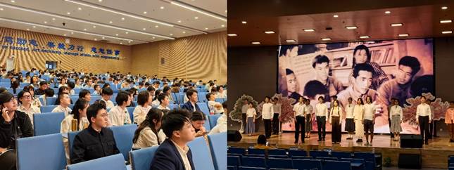王庆国导演在演讲中深情回顾了他与交大的深厚情谊,早在2006年他就曾执导我校校庆晚会。并分享了音乐剧《轨迹》的创作历程。他坦言导演工作是“苦中有乐”的人生追求,他讲到该剧融合梅兰芳体系的程式化美学与斯坦尼体系的戏剧张力,历经艰辛排练方得呈现。他强调,音乐剧通过刘秦川三代人的奋斗故事,将西迁精神转化为跨越时空的艺术表达,展现了知识分子与国家同频共振的崇高信念。