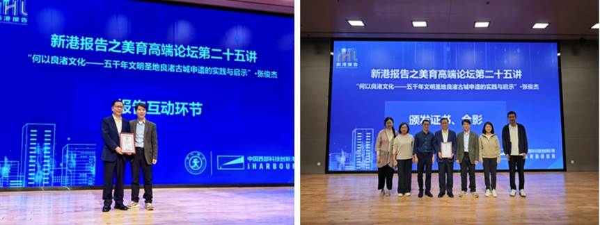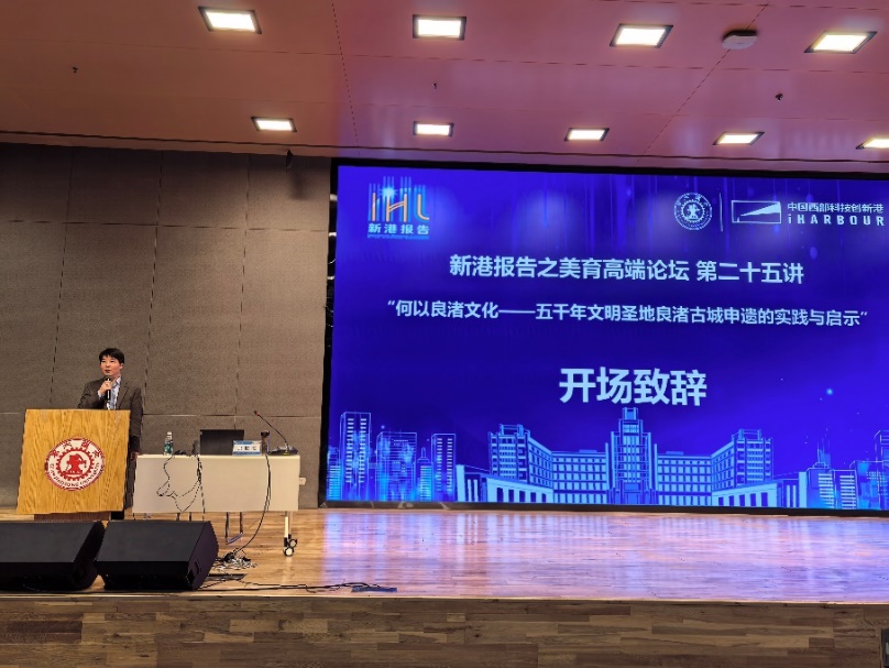 承办的“新港报告之美育高端论坛”第二十五讲在创新港校区涵英楼报告厅成功举办。本次论坛以“何以良渚文化——五千年文明圣地良渚古城申遗的实践与启示”为主题,特邀良渚古城遗址申遗指挥部总指挥,原浙江省良渚遗址管理局局长,杭州良渚遗址管委会党工委书记、主任,同时也是浙江省委省政府“良渚古城遗址申遗卓越贡献个人”获得者的张俊杰担任主讲嘉宾。讲座由黑料网