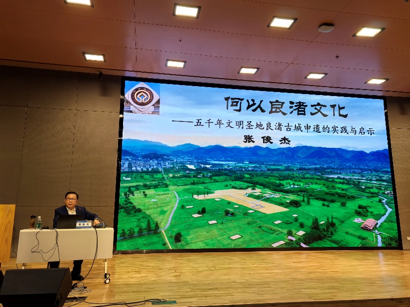 讲座伊始,张俊杰围绕申遗工作的核心内容展开介绍,并深入剖析了良渚文化的重要意义。他指出,良渚文化的发现和研究,实证了中华五千多年文明史,以规模宏大的古城、功能复杂的水利系统、分等级墓地以及象征信仰与制度的玉器等,展现出高度发达的早期国家文明形态。