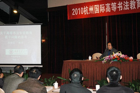 中国书法系杨锁强教授、杨晓萍讲师于2010年12月7日——8日,应邀参加了中国美术学院举办的杭州国际书法教育论坛。
