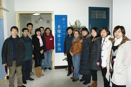 宣传部部长贾箭鸣部长在讲话中希望多媒体工作坊不光立足于人文教学,还能面向全校师生,提高全校的人文素养,发扬交大的传媒传统。重条处贾申利处长对工作坊充分肯定了实验室建设并提出具体的要求和希望,希望多媒体工作坊能成为文科实验室建设的亮点。陕西电视台国际部主任、高级编导于聚义代表校外特聘专家讲话,高度称赞我校文科实践性教学所取得的成绩,并表示愿意为我校学生提供更多的实践空间。