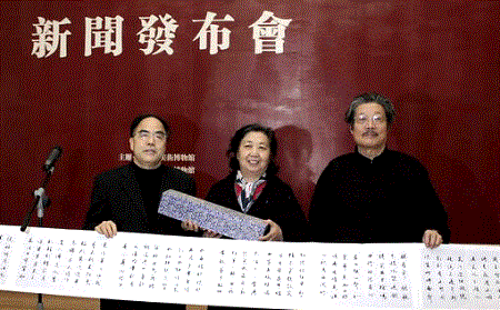 钟明善教授(右一)向陕西省美术博物馆无偿捐赠巨幅书画作品