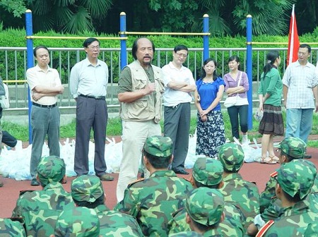 晴朗但不炎热的天气下,军训在紧张有序地进行。上午10点钟,李建群副院长、李黎明副院长、黎荔副院长、宋永平副书记、院办主任张科、院长助理燕连福,和中文系系主任焦垣生、社会学系系主任陈皆明、系支部书记赵文龙、哲学系系主任张帆、支部书记张如良、副系主任王小红、艺术系系主任贾濯非、副系主任张伏虎,以及班主任周立名、贾宝云、姚明今、李重、王劲等老师,带着凉席、饮料和日常生活用品,来到学校足球场看望慰问22连和4连的军训教官和参训学子。