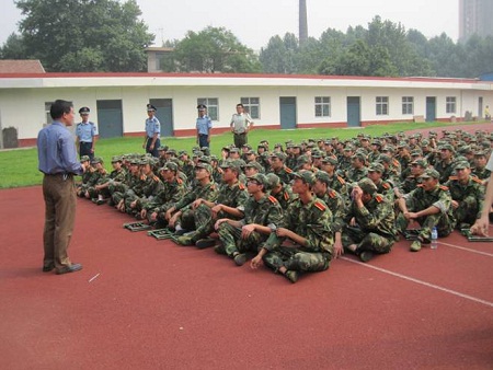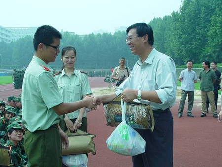 院领导、系主任、班主任一行来到军训场地,慰问正在紧张军训中的教官和2010级150多名新生。