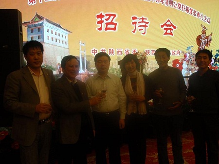 公祭礼毕,作为人文学科的教师代表、作为人文学科的教师和研究者,大家怀着对人文初祖的无比敬仰之情,瞻仰轩辕殿,拜谒黄帝陵,考察轩辕庙内历代炎黄子孙祭祀先祖的祭文、题诗、题字,进行了一次人文寻根之旅。当天晚上,在曲江惠宾苑宾馆省委省政府举办了隆重的招待宴,我院7位教师应邀出席了这一盛会。卢黎歌教授被安排与陕西省副省长姚引良等省市领导同在主桌进行深度交流,我院教师还与应邀前来的著名历史学家、思想史家、教育家张岂之先生、香港轩辕教育基金会罗文春主席热烈交谈,就我院的进一步发展及今后的项目合作进行了深入探讨。