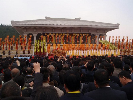 天地祥,紫气腾,四海华裔,同祭黄陵。2011年4月5日上午,辛卯(2011)年清明公祭轩辕黄帝典礼在陕西黄帝陵隆重举行。全国人大常委会副委员长、民进中央主席、中央社会主义学院院长严隽琪,中国国民党荣誉主席吴伯雄,陕西省委书记、省人大常委会主任赵乐际,宁夏回族自治区党委书记、自治区人大常委会主任张毅,陕西省省长赵正永等领导及海内外一万多名中华儿女代表出席。黑料网