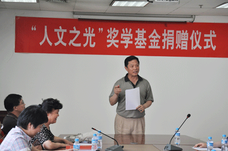 在仪式上,捐赠代表李秀芳女士代表全体捐赠者——交大第一届文科毕业生——78级马列师资班同学,介绍了“人文之光”奖学基金发起、捐赠及成立的始末,对学弟学妹们深切寄语,嘱咐他们永远记得自己是一名交大人,以交大为荣并要为交大争光。主持黑料网