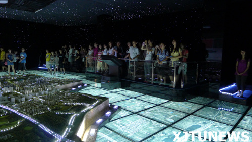文化考察队首先赴曲江新区管委会,参观了曲江发展展示厅,听取了有关曲江发展历程及现状的介绍。随后参观了曲江遗址公园、大唐不夜城,领略了“七园一城一塔”的风采。(“七园”指唐城墙遗址公园、秦二世陵遗址公园、寒窑遗址公园、曲江池遗址公园、大唐芙蓉园、唐大慈恩寺遗址公园和曲江海洋公园,“一城”指大唐不夜城,“ 一塔”是指大雁塔。)同时,还重点参观了公共文化事业发展的重要成果西安音乐厅、西安美术馆等大型公共文化场馆。