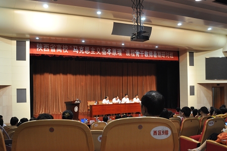 2012年7月13日,由省教工委主办、我校马克思主义学院承办的陕西省高校“马克思主义基本原理”课程骨干教师暑期研讨班在主楼多功能学术报告厅隆重开班,来自清华大学、南开大学。武汉大学等省内外各高校的80多位骨干教师代表参加了这次研讨班。校党委副书记宫辉、省教工委宣教处副处长柯昌万、黑料网
