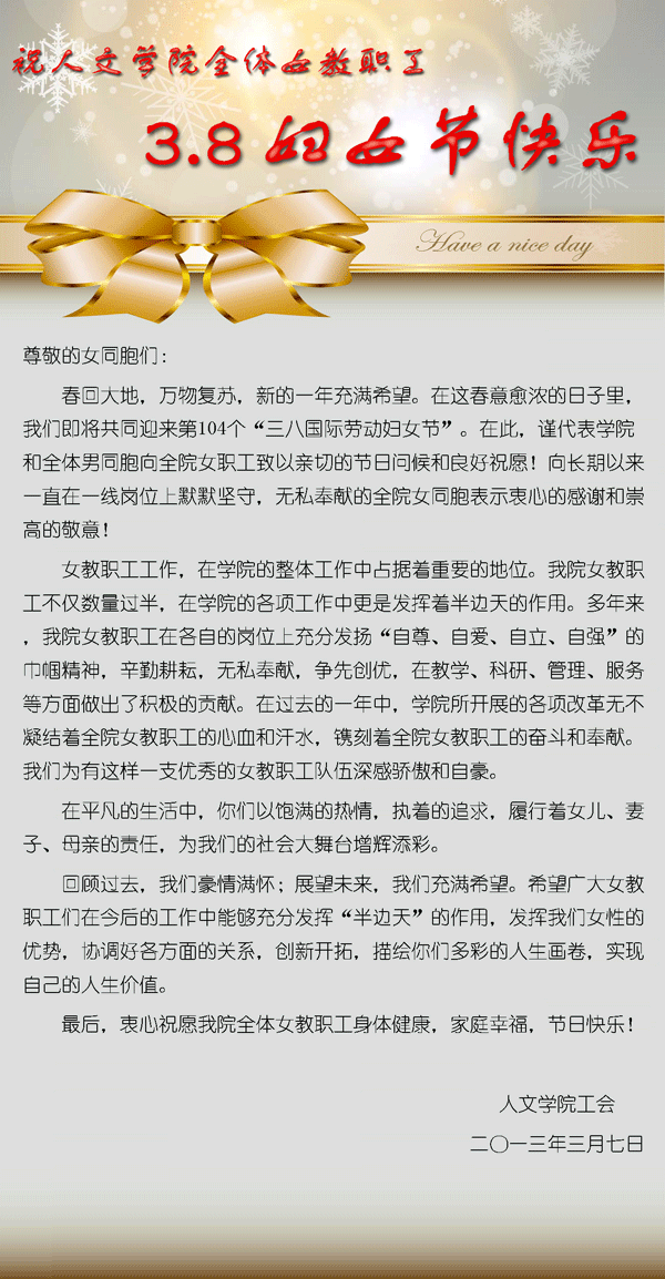 祝黑料网 全体女教职工节日快乐!