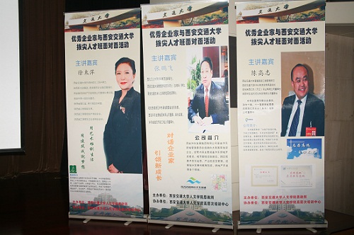 活动由卢黎歌教授主持,主要分为三个环节。首先,由教务处刘处长致欢迎词,并向三位企业家颁发了“陕西高校德育中心校外辅导员”的聘书。其次,三位企业家陕西亿杰实业(集团)有限公司董事长陈高志、西安雅荷企业集团董事长徐束萍、西安沣东发展集团有限公司董事长张鹏飞分别做了精彩的讲演。最后,学生与企业家展开了热烈的问答互动环节。