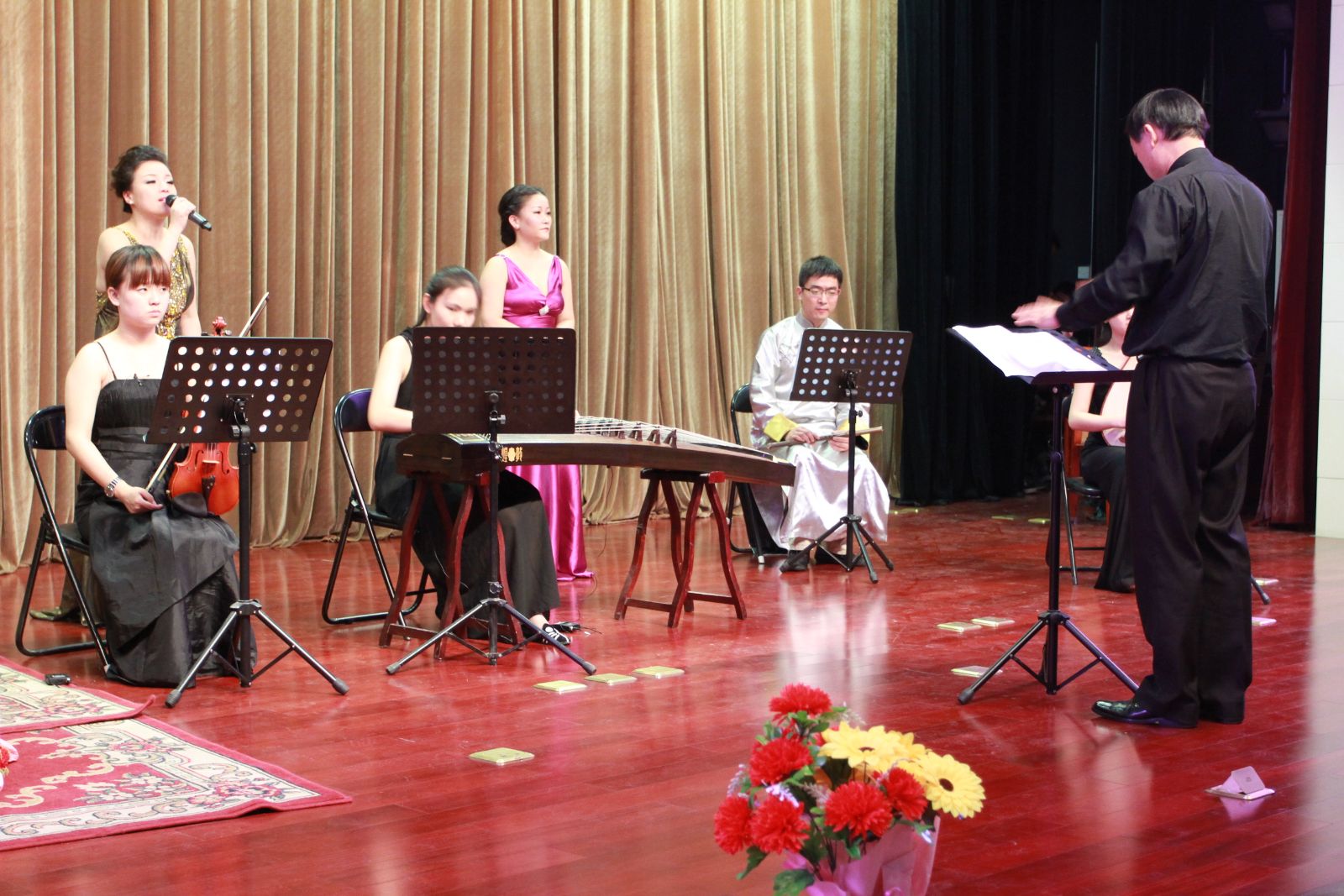 音乐会在音乐中心金晨老师的法国艺术歌曲《星空》中拉开帷幕,流畅、优美的声音和自然轻松的表演征服了现场观众。两个多小时的音乐会上,同学们听到了法国歌剧《流吧,流吧,我的眼泪》、新疆民族风歌曲《七月的草原》、古琴独奏《流水》、《梅花三弄》、《凤求凰》、《长门怨》,古琴伴奏演唱《关山月》和《阳关三叠》、奥地利歌剧《默默倾诉》、意大利歌剧《被遗弃的嫁娘》、法国流行音乐《玫瑰人生》,最后以全体演员的大合奏、协同西安音乐学院重新改编的歌曲《卷珠帘》落下了帷幕。音乐会的钢琴和古琴伴奏音乐中心教师梁睿,多次参加全校音乐会伴奏,曾于2009年举办过“心底诗意,指端春风”个人钢琴音乐会。音乐会还邀请中国古琴艺术诸城派第四代传人、西安音协副主席赵勇老师,音乐会中间还穿插了我校古琴社、艺术团同学的古琴独奏和舞蹈,给同学们除带来听觉以外美轮美奂的视觉享受。