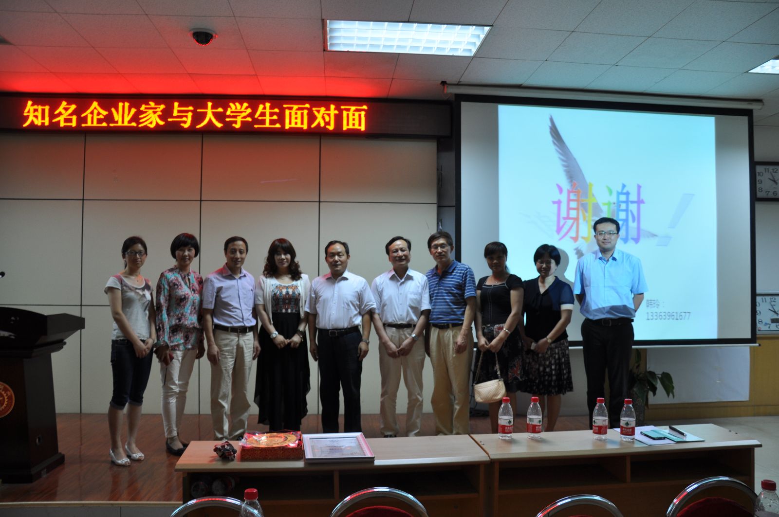 接下来,两位企业家分别做了精彩的讲演。李瑞明院长首先从中华民族辉煌灿烂的历史角度指出我们的民族是富有智慧和创造力的,并且鼓舞当代大学生要承担起历史赋予我们的责任与使命,多读书,丰富自己的头脑,增长自己的才干,成为社会和国家需要的人才。之后,就创业需要具备的条件、就业需要注意的事项等问题进行了精辟分析,并强调创业需要天时地利人和,就业需要知识、资金、经验和人脉等因素的配合。