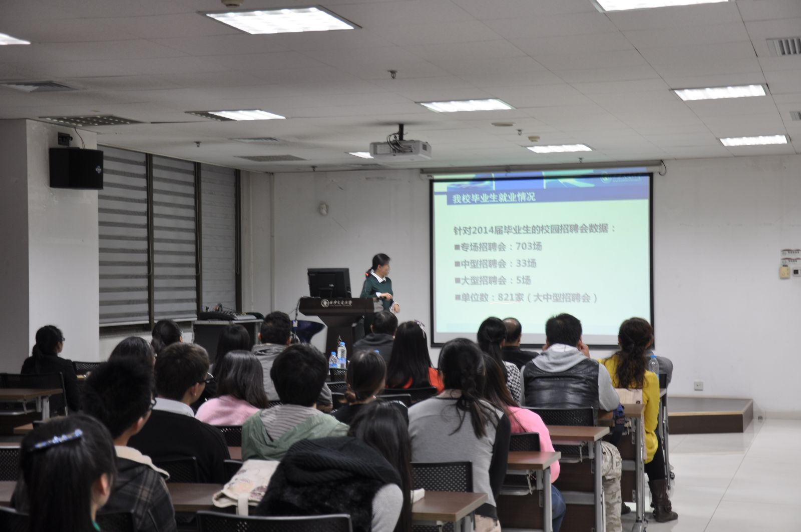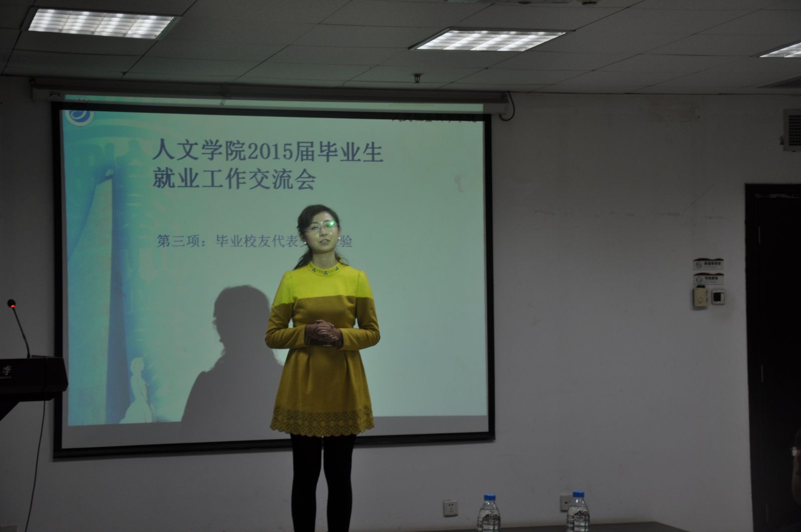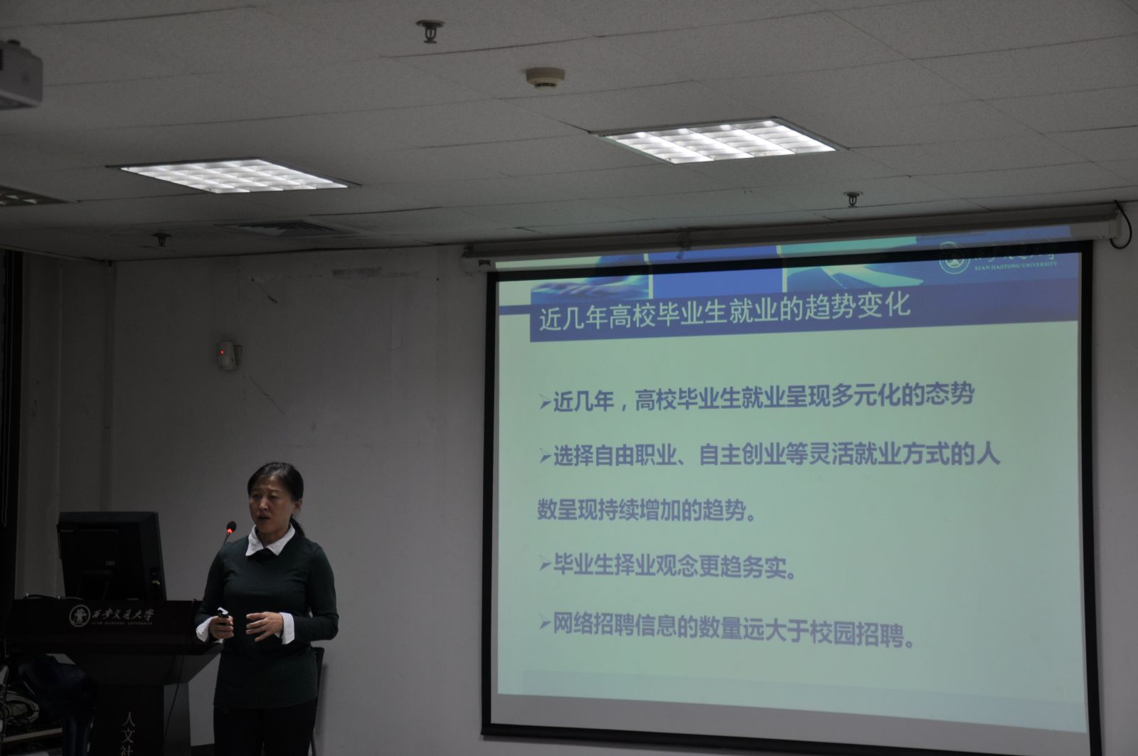 交流会上,刘春阳老师针对人文学生的实际情况,给大家做了题为“求职择业与就业签约”的讲座。刘老师通过详实的数据向大家介绍了我校毕业生近几年的就业情况,并通过一些生动的事例帮助毕业生分析了当前的就业形势、人文社科类专业的优势以及在求职择业中可能存在的问题,并且对这些问题提出了具有针对性的指导意见。她建议应届毕业生要正确地认识自己,明确职业定位,设置合理的求职标准,为自己的生涯做主。此外,刘老师还对就业协议签订、违约、报到证等应届毕业生可能忽视的问题也做了非常详细的介绍。