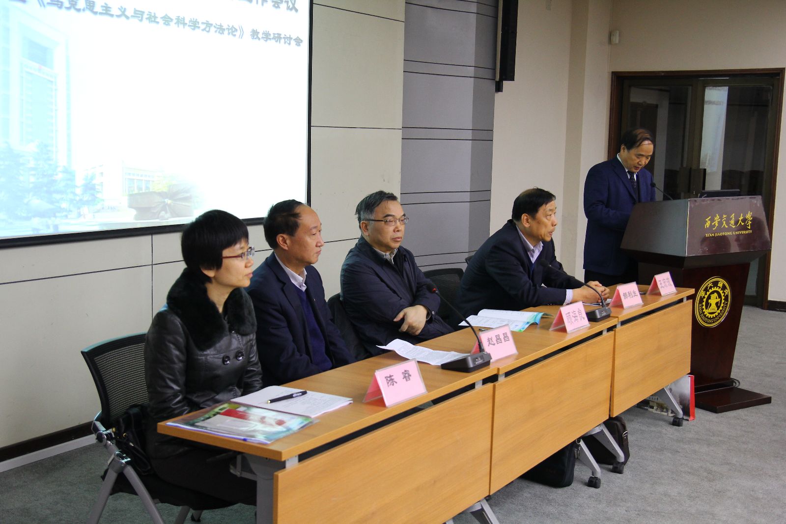 会上,教育部高校思政课教指委主任顾海良做了主题讲话,介绍此次会议召开的背景以及教指委关于研究生思政课五门课的整体实施方案,并强调以专题性和研究性贯穿研究生思政课的教学,部署了研究生分教学指导委员会下一步工作。教育部社科司教学处陈睿处长介绍了教育部相关文件精神以及立体化教材体系建设和教师队伍建设的基本要求,并对《马克思主义与社会科学方法论》课程建设提出了具体的指导性意见。