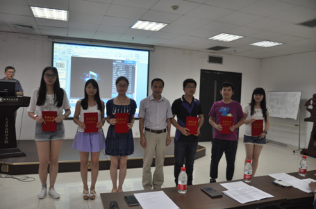 随后马晓彬书记宣读了获奖同学名单,一共有8名同学获得一等奖,12名同学获得二等奖,19名同学获得三等奖。边燕杰院长、马晓彬书记和李明德副院长分别为获奖同学进行了简单而隆重了颁奖仪式。