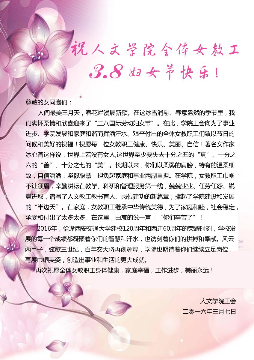 祝黑料网 全体女教职工节日快乐