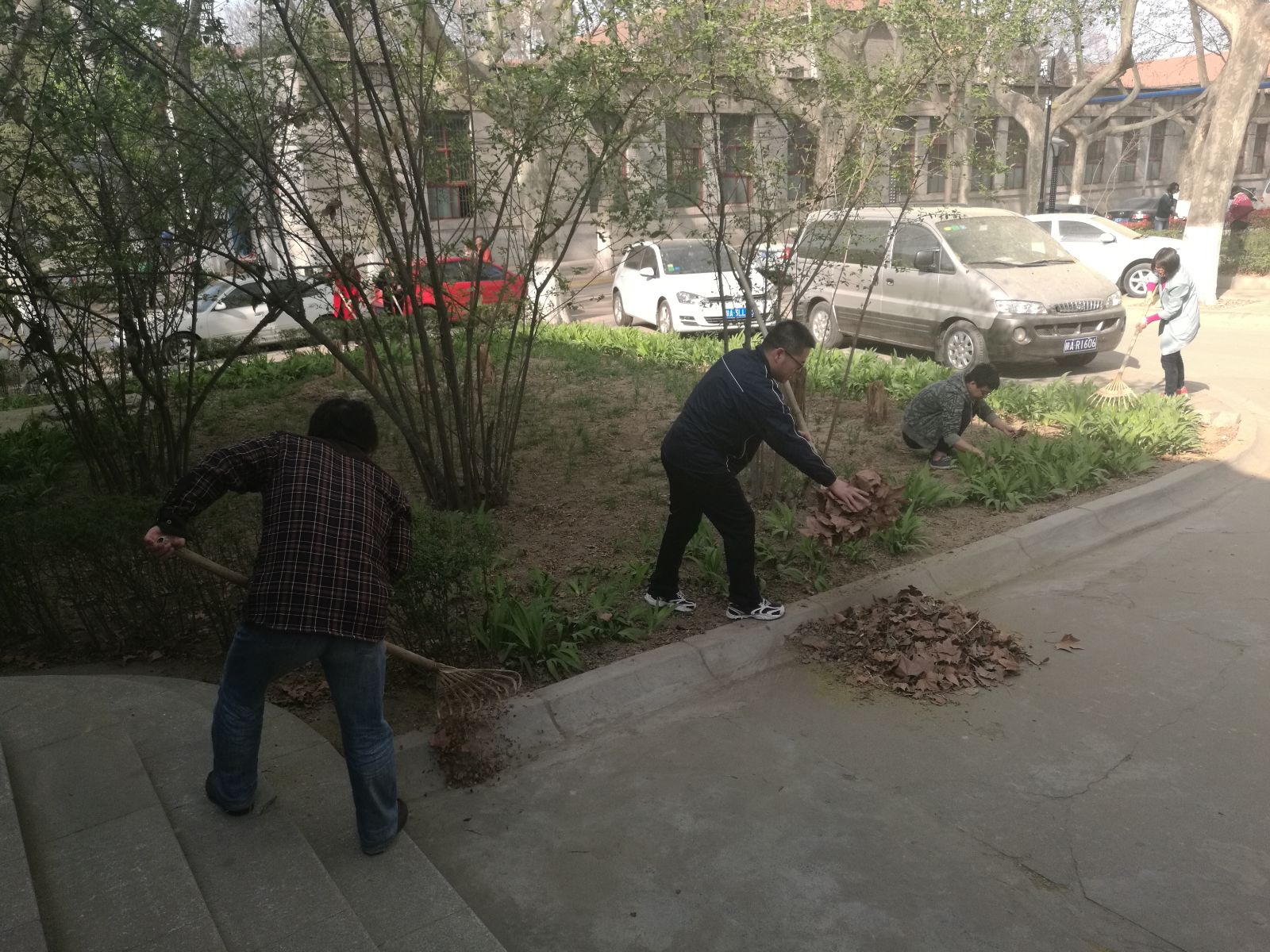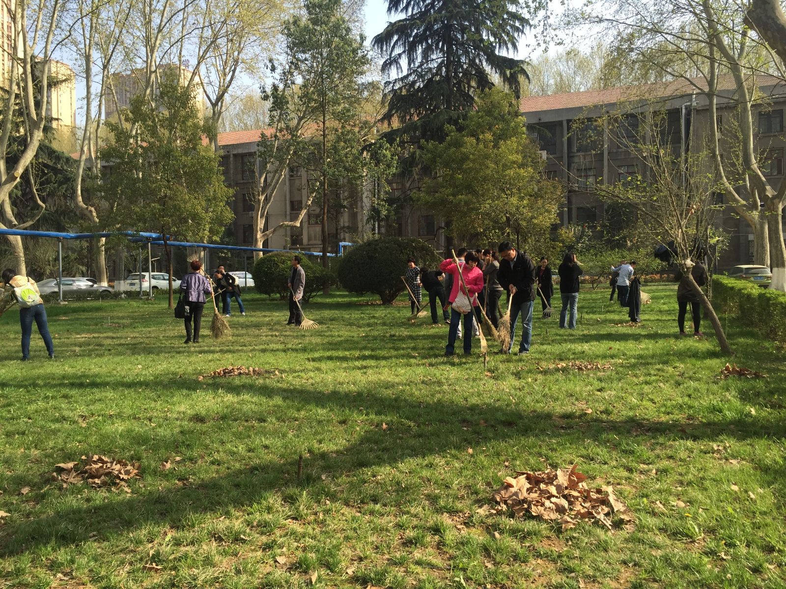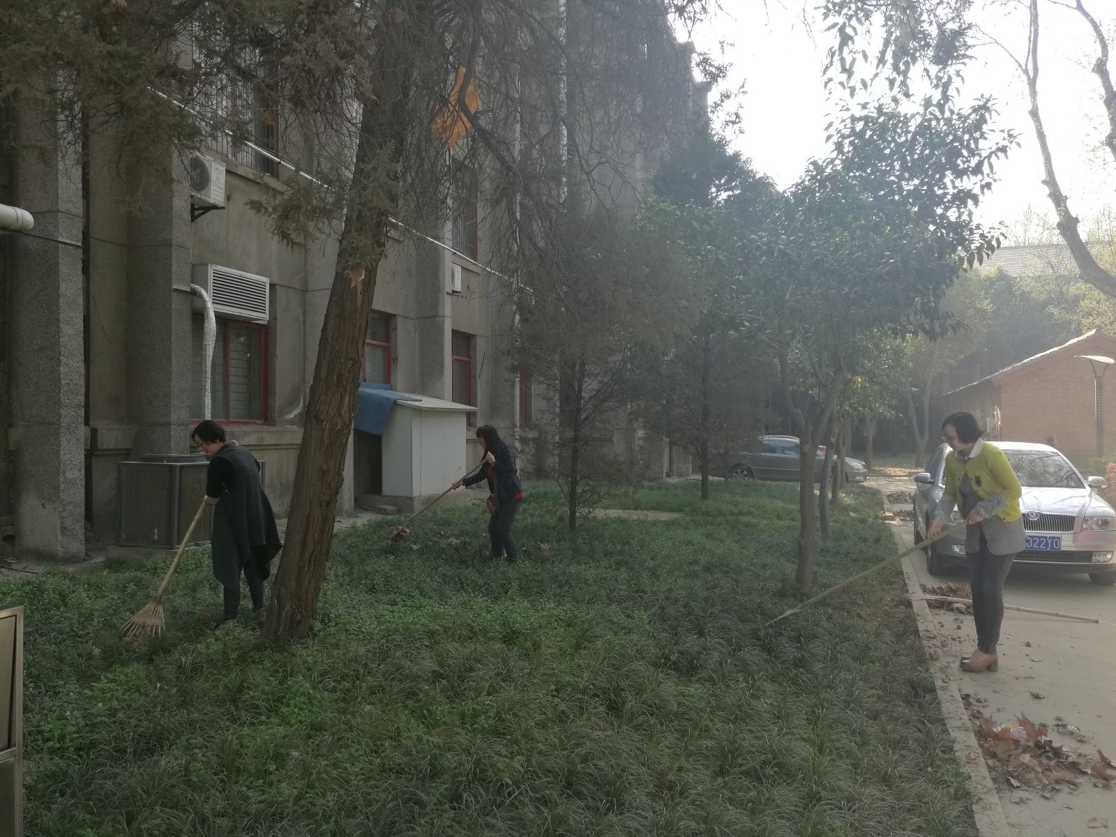 上午10:00~11:00,副书记带队组织学生们在东10宿舍包干区进行整洁校院工作。下午4:00~5:00,在学院领导和7个系主任、支部书记的带领下,40余名教职员工齐上阵,再次来到学院整洁校院包干区即东二楼东面和北面绿化带和散水区域。院领导、系主任以及青年拔尖教授们,率先垂范,大家手持耙子或扫帚,将绿花带、草坪以及小竹林中的落叶等垃圾清理出来,东二楼东侧和北侧区域一派热火朝天的劳动景象。展现着全体师生对学校的热爱,对双甲子校庆的期盼。