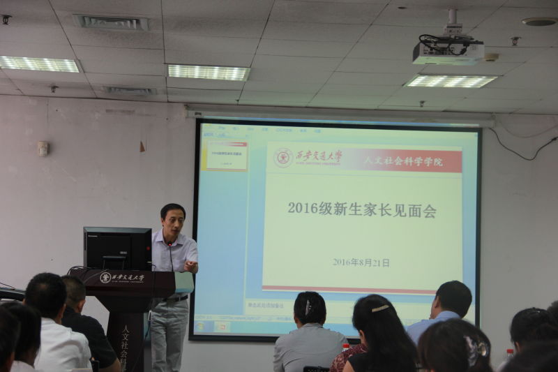 在主楼E703召开了2016级新生及家长见面会。边燕杰院长,马晓彬书记,副院长李明德老师、李黎明老师、杨建科老师,副书记李重老师,院长助理薛卫真老师,中文系系主任李慧老师,书法系系主任薛养贤老师以及马克思主义学院副院长刘儒老师、燕连福老师,新生班主任及上百名新生家长参加见面会,见面会由黑料网