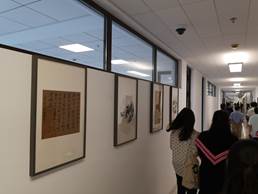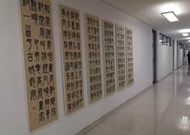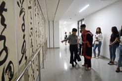 2019届书法专业本科毕业生作品展”在中国西部科技创新港开幕。此次展览的展出作品由人文社会科学学院中国书法系书法51班9名毕业生完成,展览共展出书法、篆刻、国画作品48组、99件,作品形式和装裱样式专为创新港人文社科研究院办公空间定制,五体具备,形式多样,有30多平方米的巨制,也有一平方尺的小品。这些作品既是毕业生对传统文化艺术的学习汇报,也是包含着浓浓的祝福,献给中国西部科技创新港的启航贺礼!件件功底扎实、文辞讲究,与创新港空间和谐相融,吸引了众多师生、家长及书法爱好者前来观展。