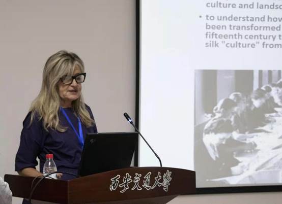 客座教授、文化遗产现代科技保护研究院副院长Maria Andrina Giusti“从中国到欧洲的丝绸画卷”,陕西师范大学李玉虎教授“古代壁画、文物彩绘、建筑色彩病害治理研究与工程实施”分别做了精彩的论坛主题演讲。