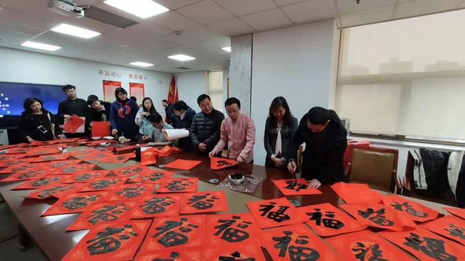 对传统节日文化的形态丰富和再造。通过“写春联”、“送春联”实现了校园多层次、多渠道的情感融汇和文化共享。笔墨写春秋,挥毫抒真情,书法春联蕴含浓厚文化底色,雅致脱俗,充满意趣,深受教职工们喜爱。2019年是交大创新港入驻元年,劳碌了一年的教职工们细数成果无比欣慰,2020年则是创新港建设的关键节点,教职工们将继续保持昂扬的斗志,带着这份温暖为交大未来的发展建设添砖加瓦!