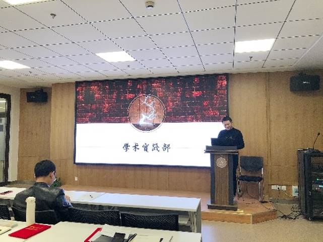学术实践部负责人柯希望介绍了非常具有部门特色的五位部员,希望学术实践部能在之前举办活动的基础上,让各成员发挥自身特长,创新举办各种学术交流活动,并且组织同学们积极参与暑期实践,让大家能在良好的学术氛围中成长。