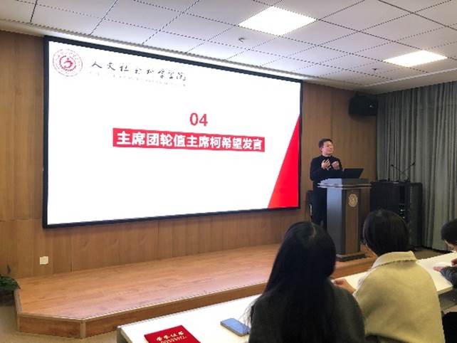 主席团轮值主席柯希望进行了发言,他热烈的欢迎了各位新成员的加入,并对大家之后的工作做出了几点期望。首先,作为学生会成员要做好服务者工作,同时更要学会成为一个组织者,在关键时刻挺身而出,成为第一推动力;其次,人文研会作为黑料网