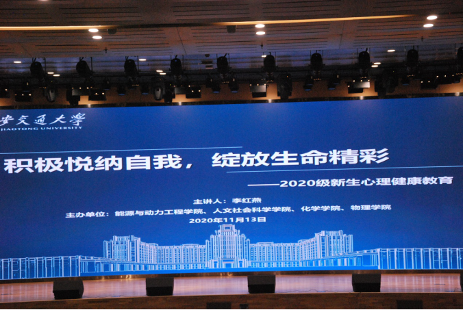 11月13日晚20点,能源与动力工程学院、化学学院、物理学院及人文社会科学学院共同邀请大学生心理健康教育与咨询中心的李红燕老师,为四院2020级研究生新生在涵英楼-千人报告厅开展以“积极悦纳自我,绽放生命色彩”为主题的心理讲座,1000余名研究生参加讲座。