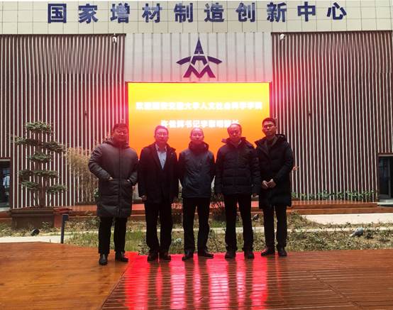 人文社会科学学院院长李黎明,党委书记许佳辉、艺术系系主任蒋维乐、青年教师陈强一行前往国家增材制造创新中心进行考察调研,洽谈构建校企产学研协同育人平台事宜并签署合作协议。国家增材制造创新中心总经理赵纪元,技术服务部总经理、副总工程师黄纪霖热情接待调研团队。