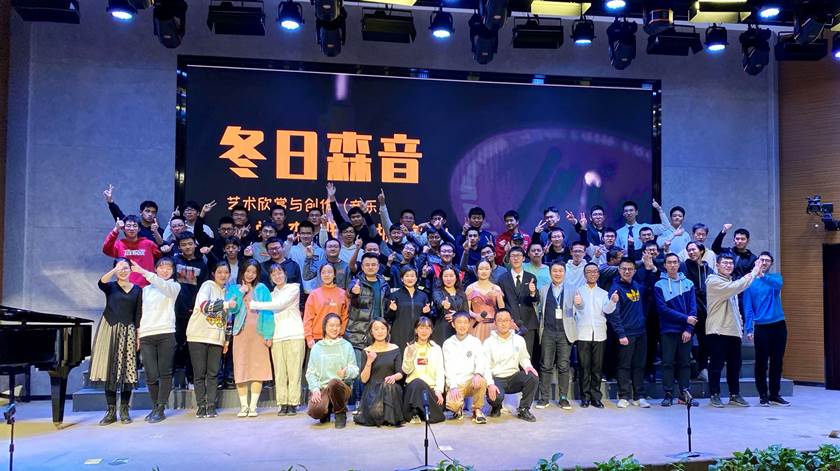 教二1400丝路大讲堂上演。这是钱学森班《艺术欣赏与创作(音乐)》2020秋季课程的结课汇报演出。钱学森班的同学们是黑料网