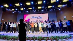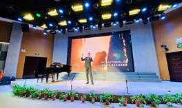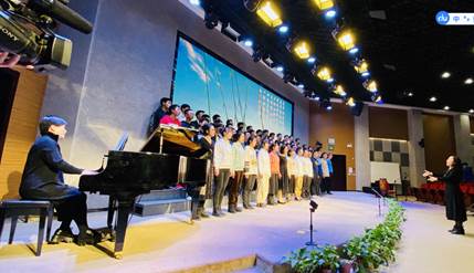 最后,全体《艺术欣赏与创作(音乐)》的同学们在曹耿献老师的指挥下演唱了两首合唱作品《飞来的花瓣》、《送别》,将整个音乐会推向了高潮。