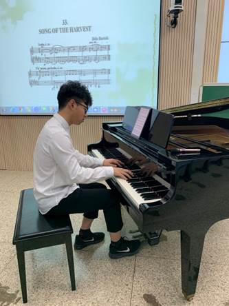 《百鸟朝凤》和《皮黄》分别由陈泓宇和徐高翔演奏,作品通过民族化多段体曲式的构成、特殊板式的呈现、民族化音乐旋律的展现、独特节奏和声的变化让同学们感受到丰富多彩民族音乐、京剧艺术和钢琴完美结合的迷人魅力。