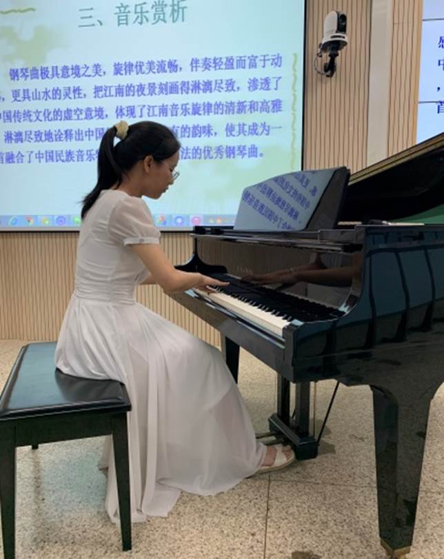 此次见面课是《音乐鉴赏》教学团队为庆祝建党100周年献上的祝福,也是一次教学改革实践的有益尝试。“器乐进课堂”并结合理论讲解,让同学们近距离感受美、欣赏美、鉴赏美,进而提升学生对中国传统音乐文化、红色经典音乐文化认知的时代价值和历史意义,树立正确价值取向,培养家国情怀、传承民族文化的使命担当。