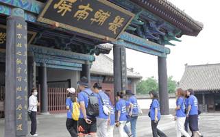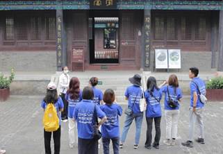 7月22日,团队成员前往被誉为“京南第一府”的河间府衙参观学习。河间府衙的复建工程是河间市打造历史古城和文化名城的重点项目工程,是河间京南第一府宏伟气势的文化载体。景区共有六大展区,以府署文化为核心,再现了河间从古至今的发展历程。府衙内部的历史古迹与婀娜古树遥相呼应,镌刻在古墙壁上的莲花无声诉说着诗经中的千古绝句。看着这些历史文化古迹,听着村民讲述当地的悠久历史,团队成员直观地感受到了当地的文化底蕴。随后师生们又参观了未完全修复的冯国璋将军第和毛公书院,残存的石碑和门牌在杂草堆中伫立着,当地老者的口述从耳旁传来,团队成员们也深刻体会到对历史古迹和文物的保护与修复的重要性,对填补历史空白起到不可或缺的作用。通过参观残存的石碑、风化的建筑、丛生的杂草,成员们深刻认识到文化景观保护与修复的重要性。