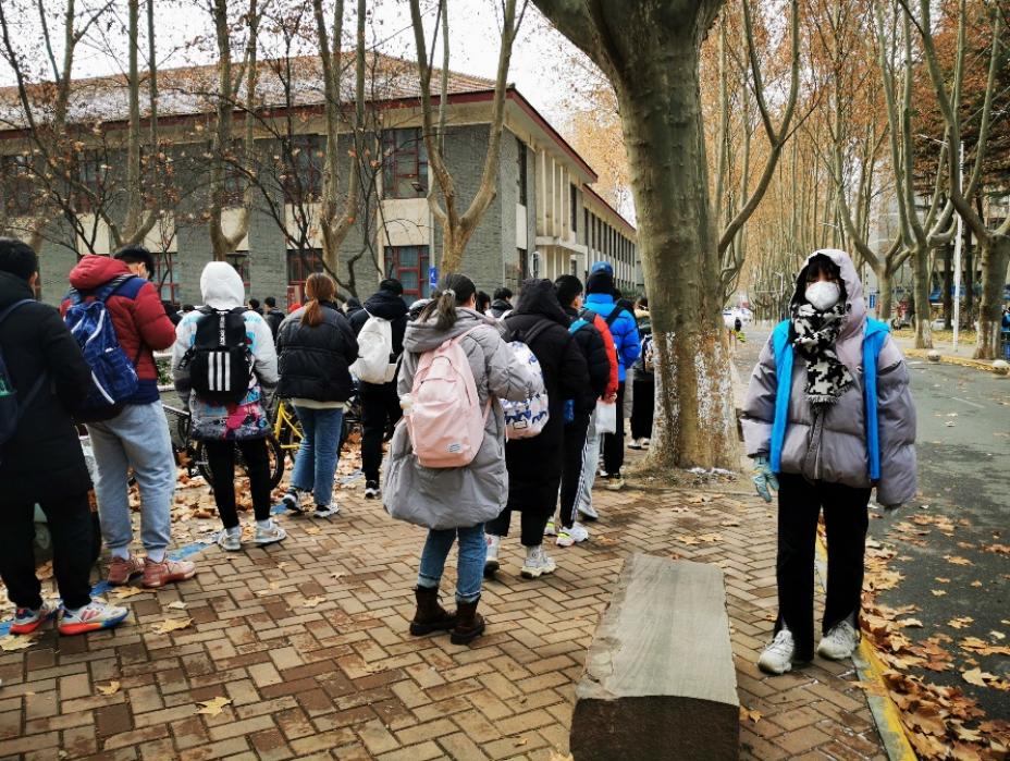 马韶涵:终于“抢”上了12月26号的志愿服务活动,我们一早先来到团委大院进行准备工作,听好安排后分别朝志愿服务点前进。我们点位主要负责为考生解疑答惑,指路,以及在他们进场时维护秩序,引导大家有序排队,并且帮助考点前进行身份核验的工作人员进行考场清场。天气很冷,但气氛很暖,从学生会发放的暖宝宝,再到后勤阿姨送来的姜汁可乐,真是感觉浑身有使不完的力气呢!志愿接棒,为疫情防控增添力量,站在志愿岗位上,在寒风中传递温暖,在疫情中共克时艰,不忘初心,牢记使命,防控做先锋,党旗心中扬。