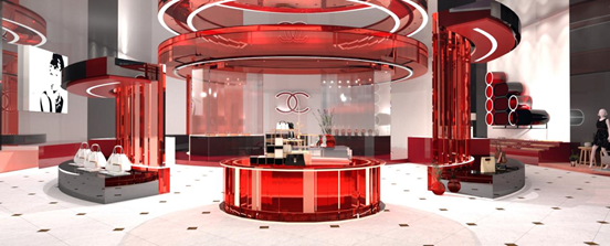 环设81班旷佳欣作品《红色狂想曲——香奈儿品牌专卖店设计》